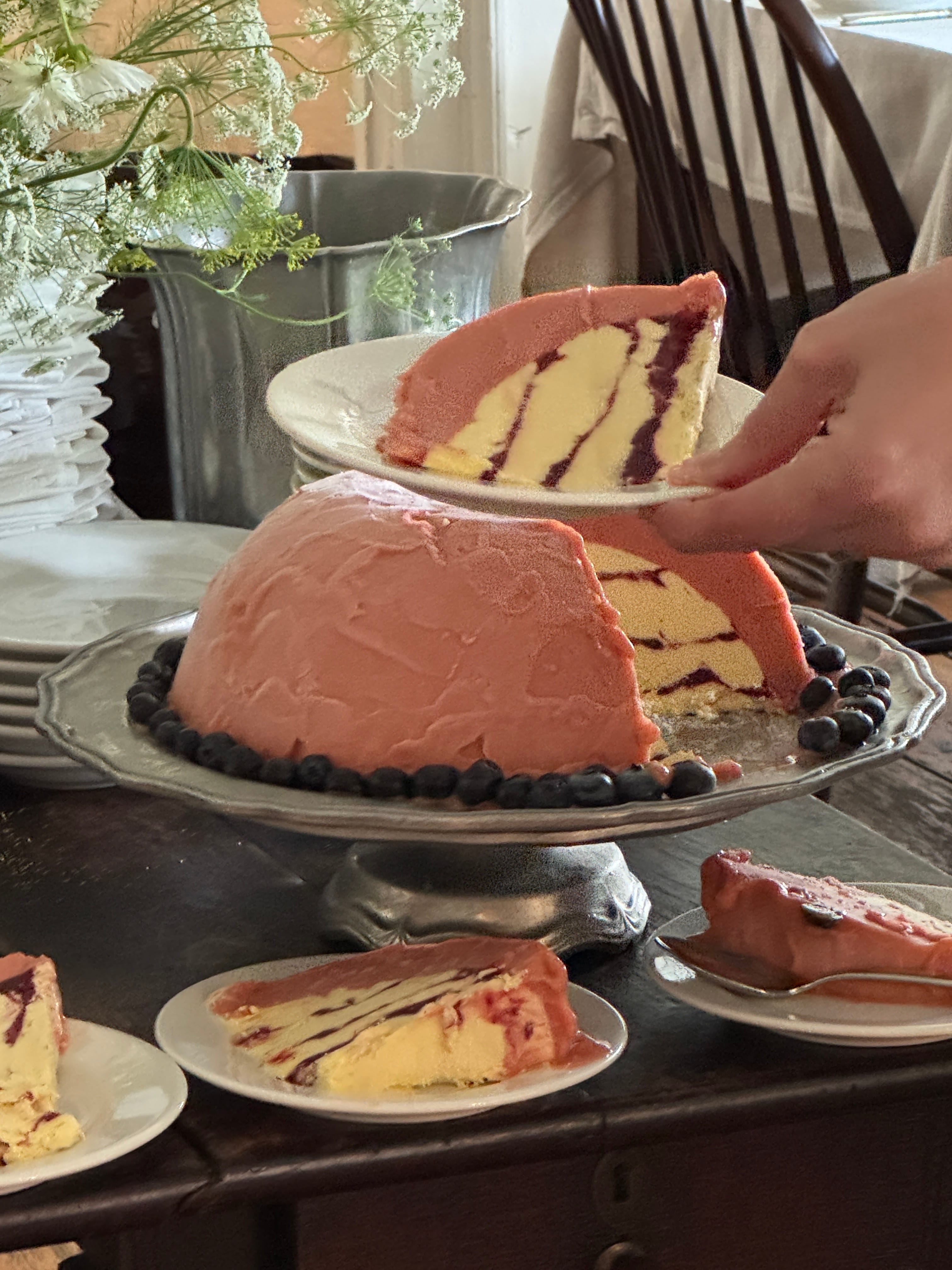 BOMBES. We’re churning ice cream cakes! Rhubarb & strawberry swirl, cookies & cream, mint chip. Special order your dream flavor for a feast. We can make one big enough to slice for 150.