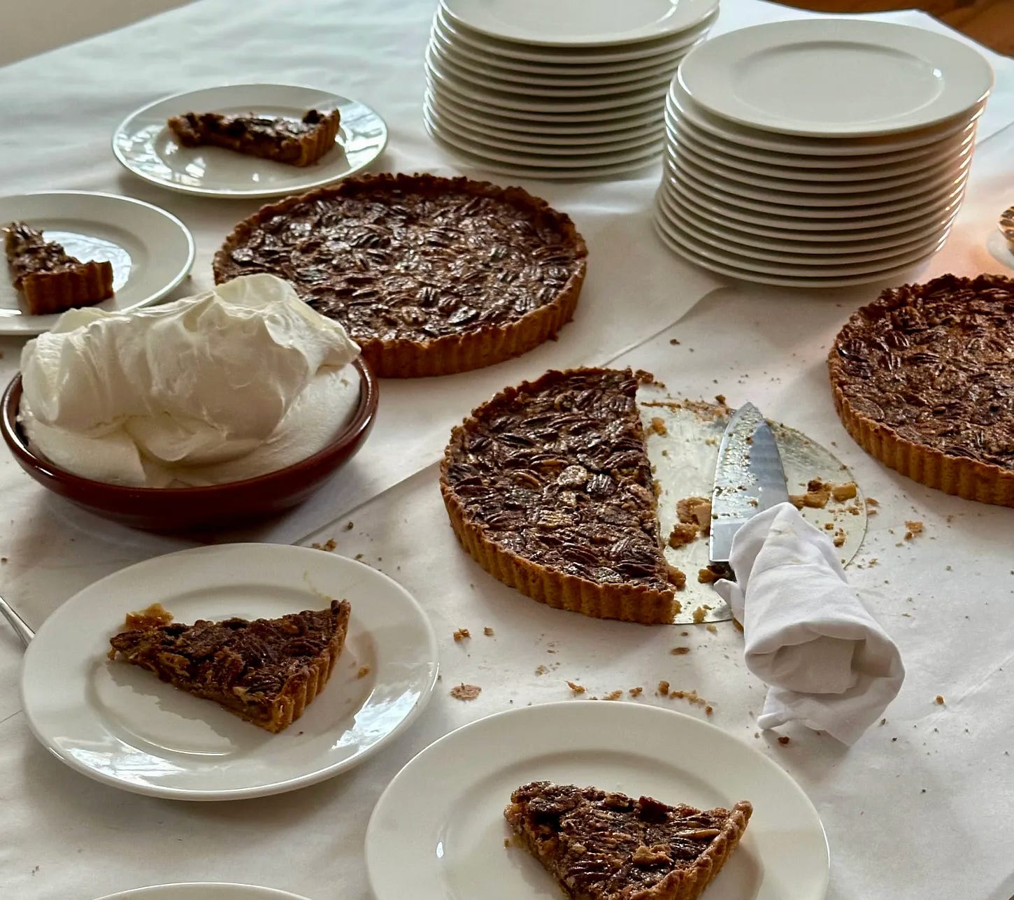 It’s pie season! Here are a few of the recipes that Clare has taught at Cooking School and written about on her recipe letter, The Best Bit: Shortcrust, Caramelized Pumpkin Pie, and Pecan Tart. The pumpkin one wobbles gently in a crisp shortcrust and tastes intensely of the vegetable itself. The pecan pie comes in tart form to rejig the ratios — in its wide, shallow shell, the caramel custard is submissive to the nuts; there’s just enough of it to glue good things together.